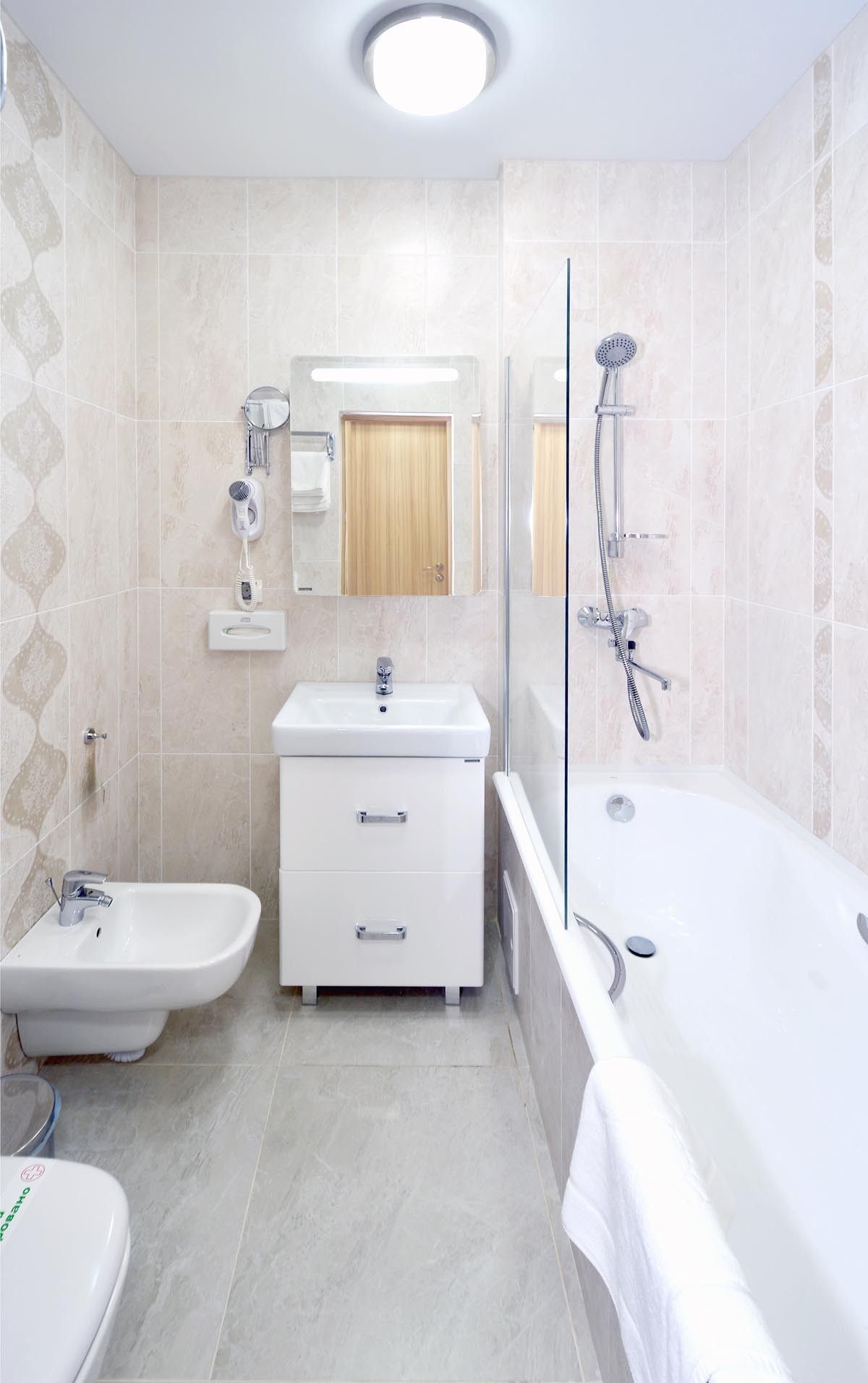 Санузел: ванна, раковина, унитаз, биде, фен